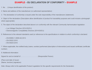 It is a simple process to generate a Declaration and whilst the purpose of the Declaration is the same, there can be minor variations to the requirements under different Directives and Regulations. Therefore it is always important to refer to the relevant legislation and to pay attention to the detail. An example of these variations can be seen in the Safety of Toys Directive, which requires a colour picture of the toy to be included on the Declaration, whereas other Directives allow it to be voluntary option.